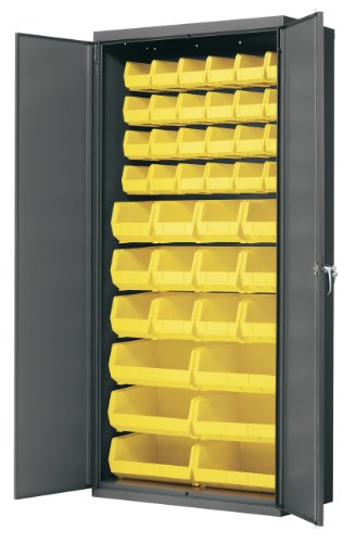 Product Description : Akro-Mils AC3618 Y Steel Storage Cabinet with Flush Doors, Louvered Panel on Back Wall, and 42 Yellow AkroBins, 36" W x 18" D x 78" H