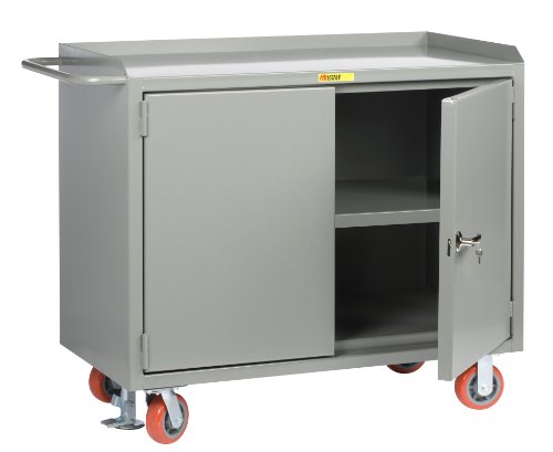 Product Description : Little Giant MB3-2D-2448-FL Locking Doors Mobile Bench Cabinet with Center Shelf and Powder Coated Steel Top, 3600 lbs Capacity, 48" Length x 24" Width x 41" Height